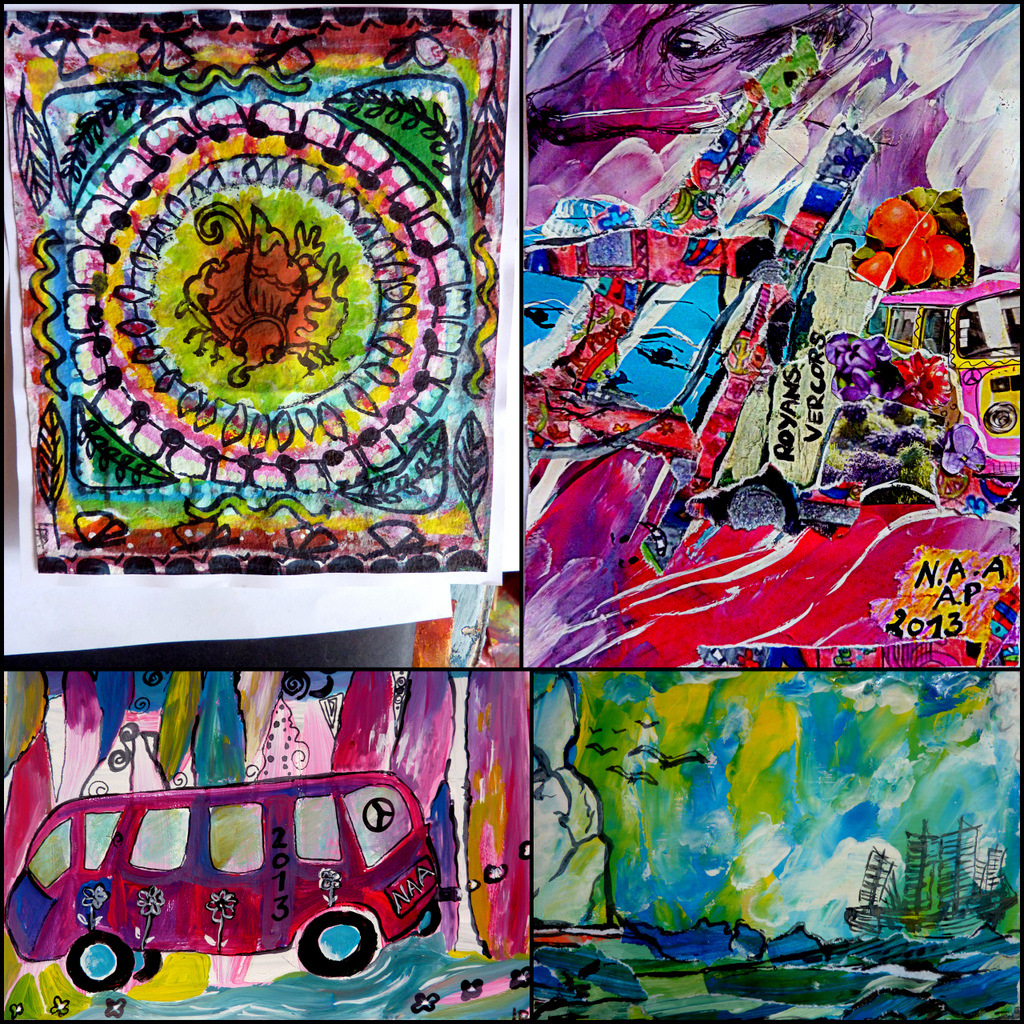 Alexandra,. l'animatrice de l'atelier en octobre et novembre, qui m'a mis sur des rails. Elle m'a, entre autre, montré le travail avec les pigments et l'importance du cadrage ( quelle partie montrer, puis comment l'entourer, la valoriser).